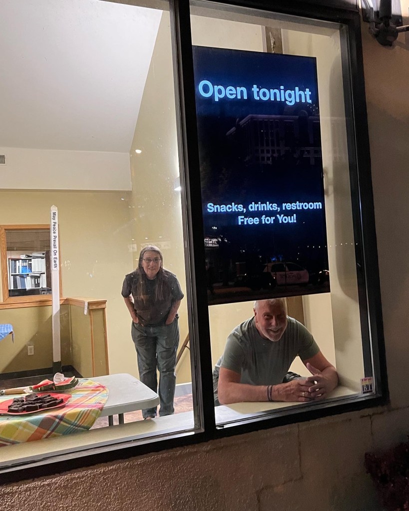 This young gets himself a small plate of food and sits next to Bill. Then the young man asks, “What do you do with the demonic?”. We weren’t expecting that question. Usually we get asked, “What are you doing open this late at night?”, “Why are you doing this?”. The demonic/demons does not usually come up in conversation. So, as the called pastor (professional religious “authority”) I figured I should speak up.